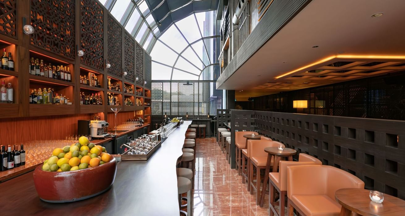 Unwind with your favourite martini at the glass-enclosed martini bar situated on the hotel's mezzanine level. The award-winning Martini Bar, established in 1998, is renowned for having the largest selection of handcrafted martinis in Singapore. Satisfy your cravings by indulging in specially curated snacks from Le Pristine while enjoying your drink.